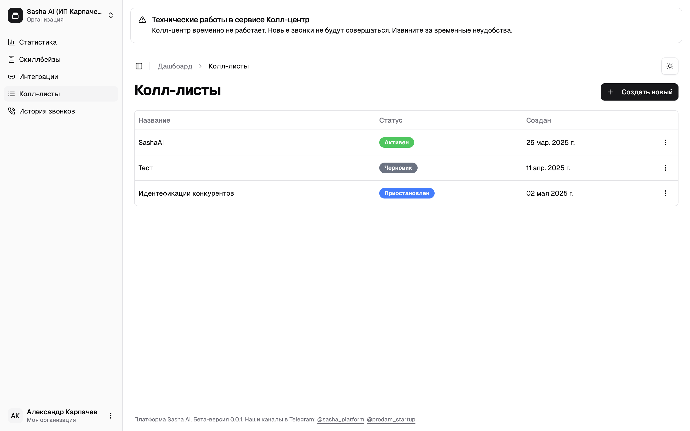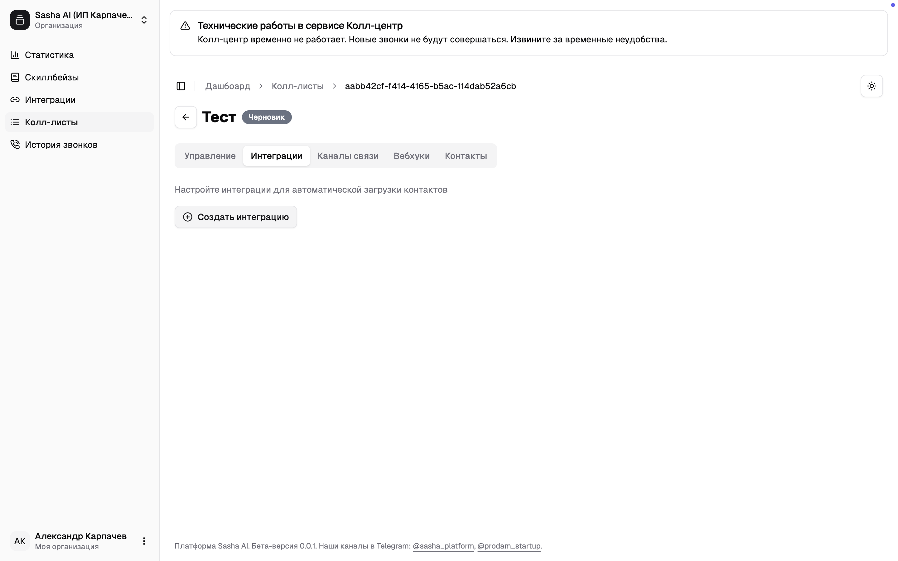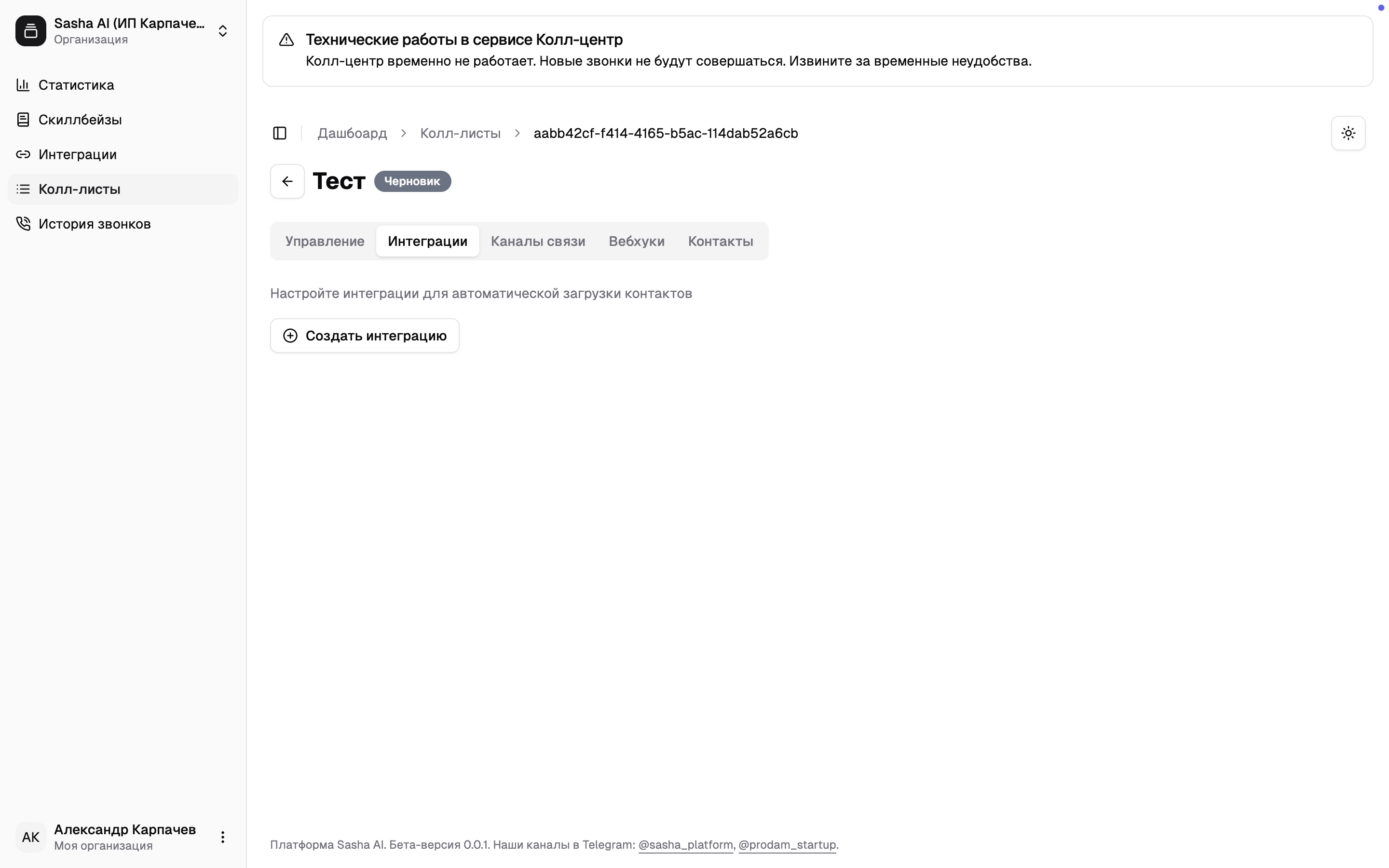 Для ручного добавления контактов в список обзвона:- Перейдите в раздел «Колл-листы»