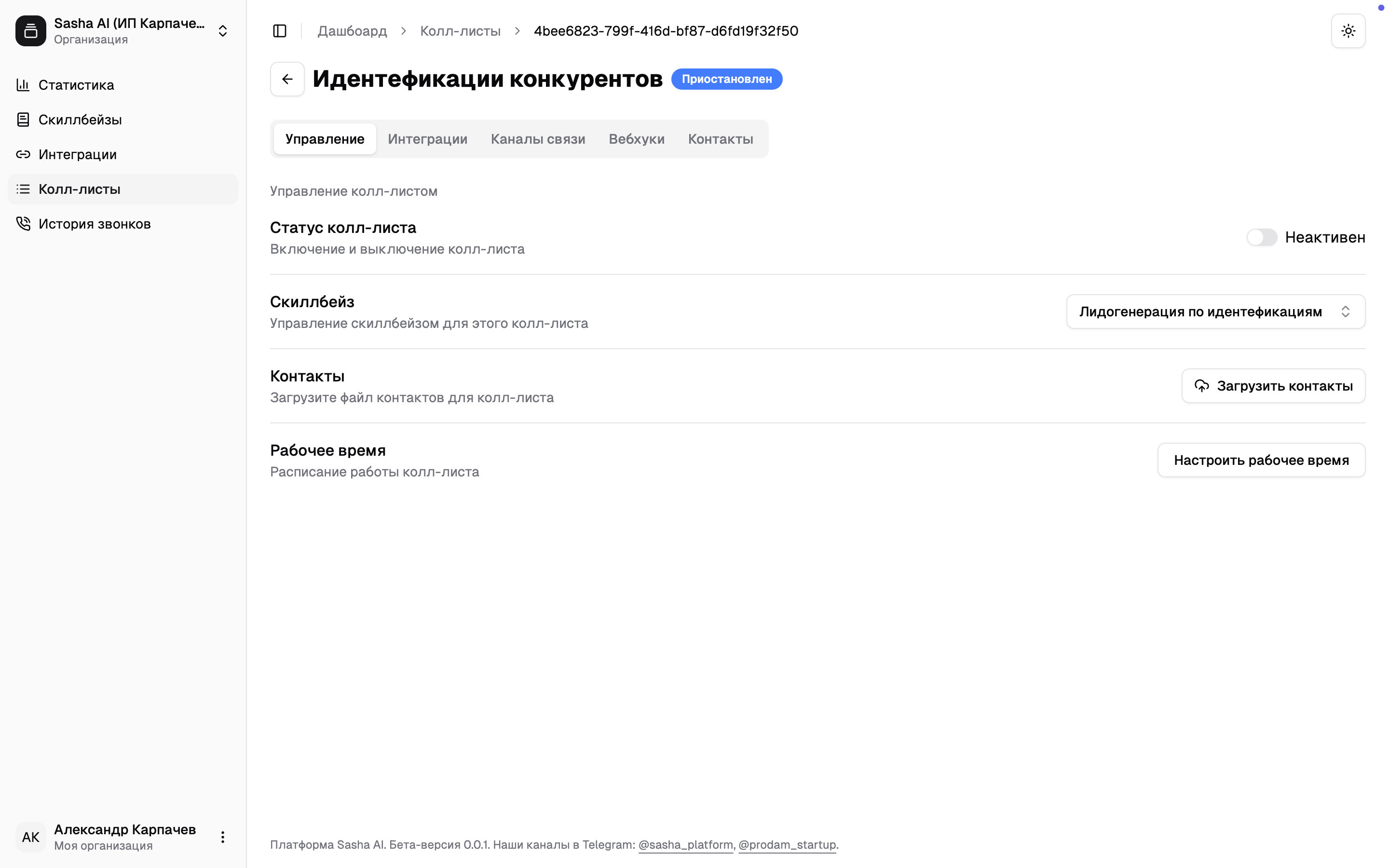 Новые колл-листы создаются со статусом «Черновик».Для активации колл-листа вам необходимо: