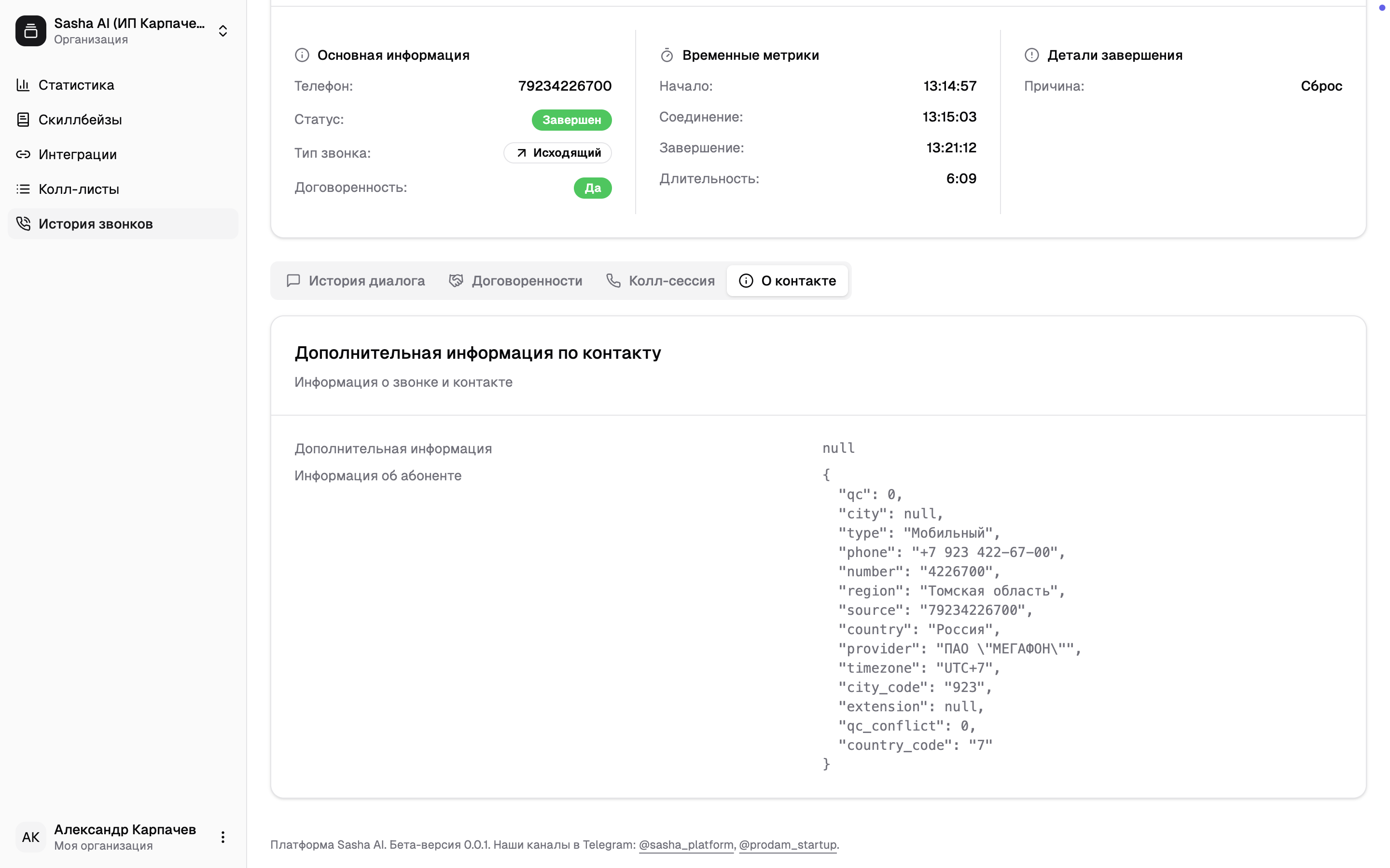 - Дополнительную информацию о клиенте (если была собрана)