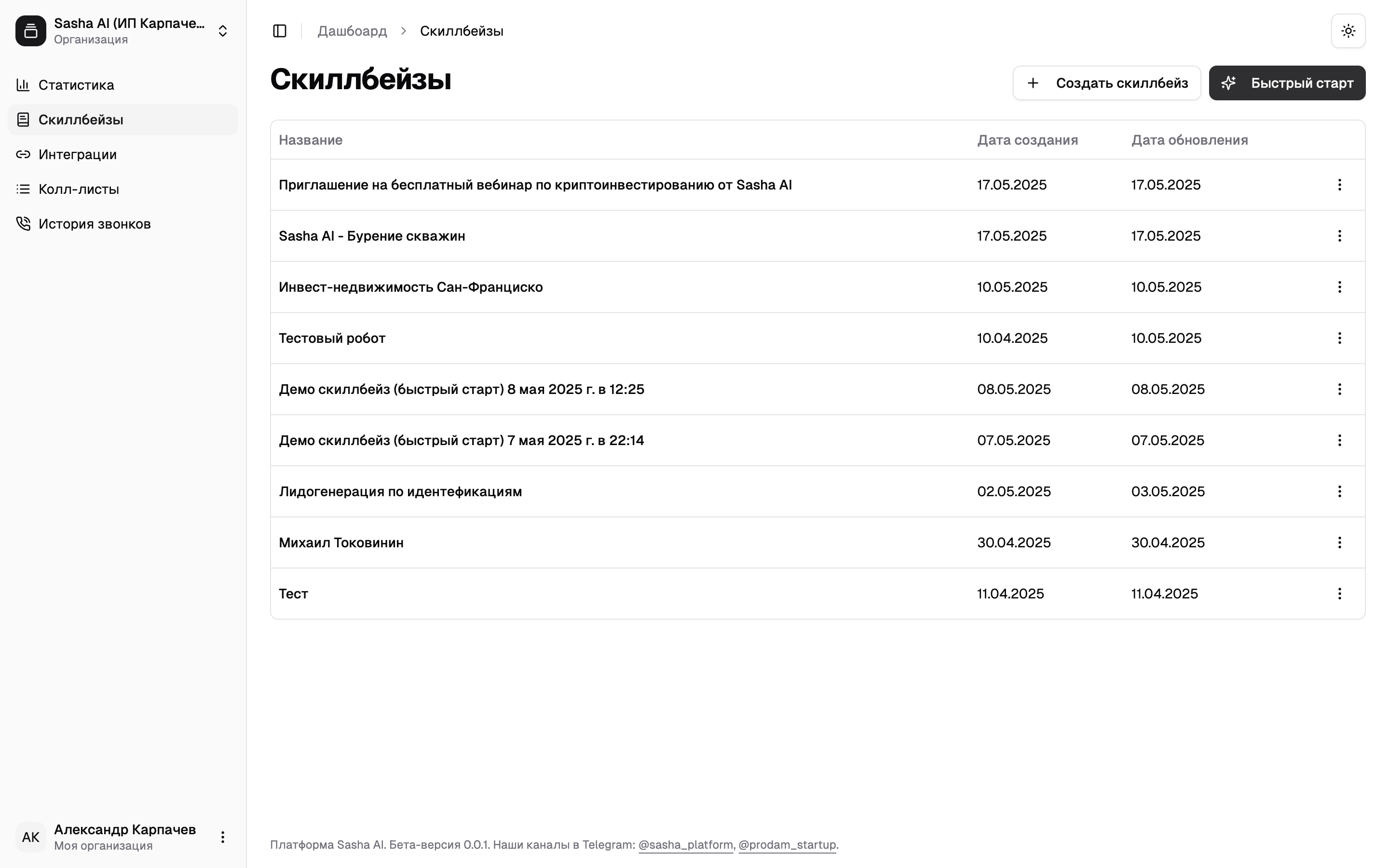 Перейдите в раздел «Скиллбейсы» и нажмите на кнопку «Быстрый старт»