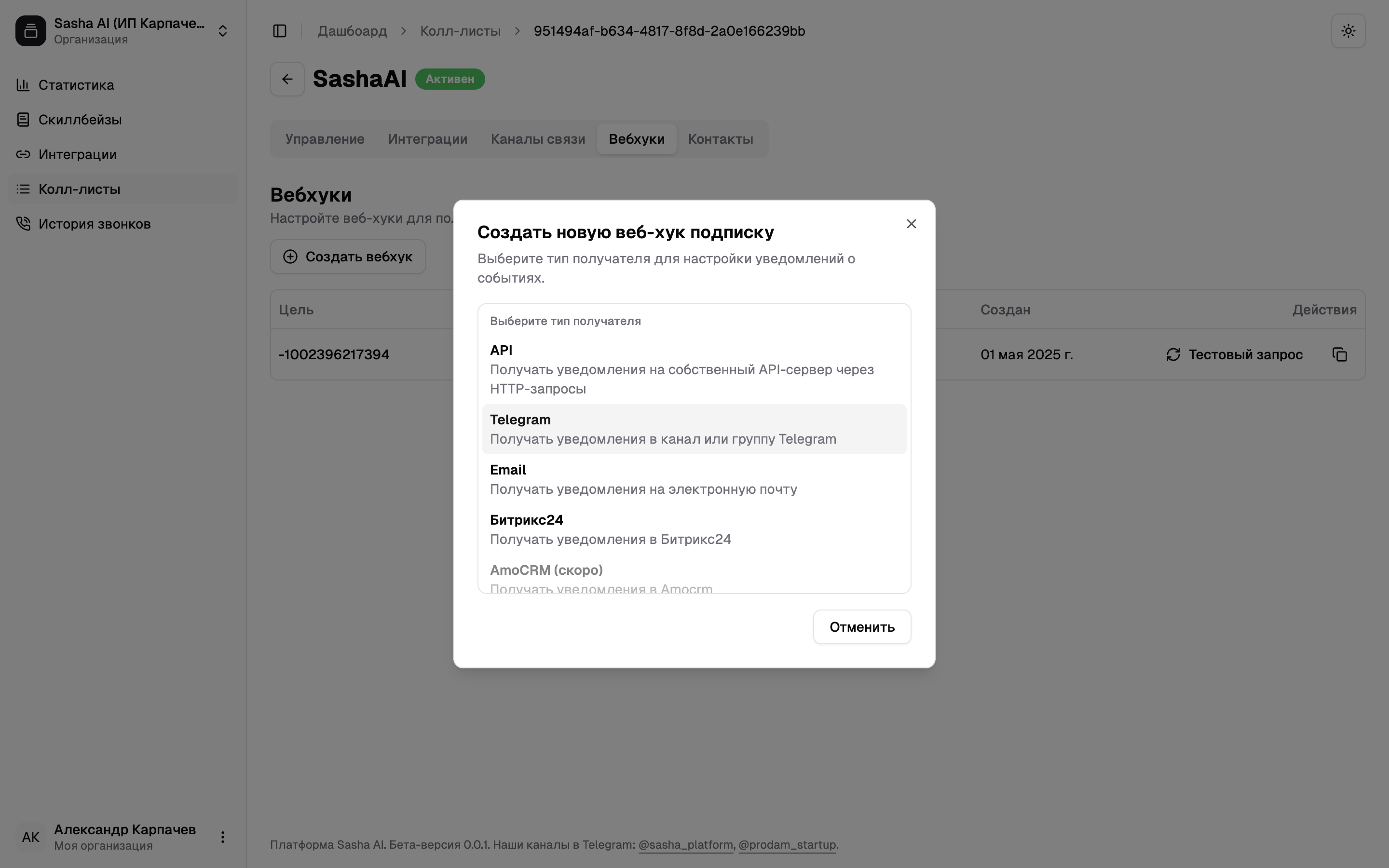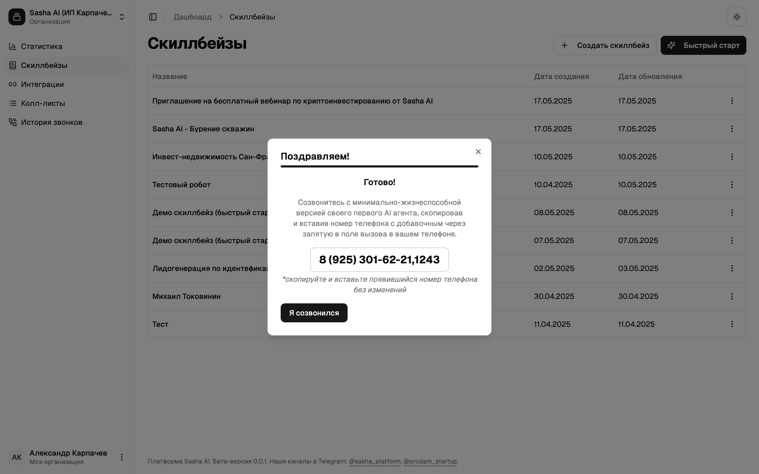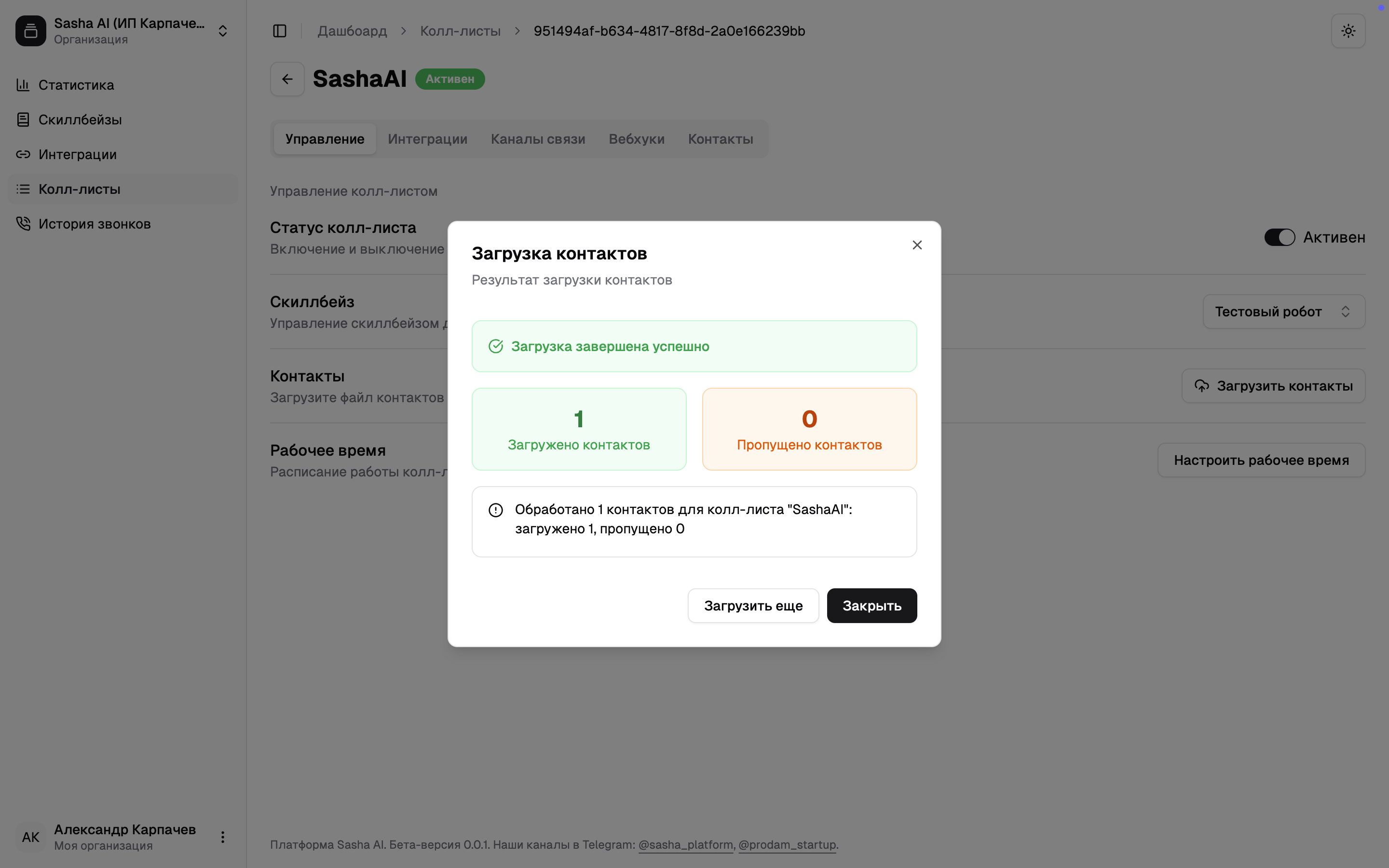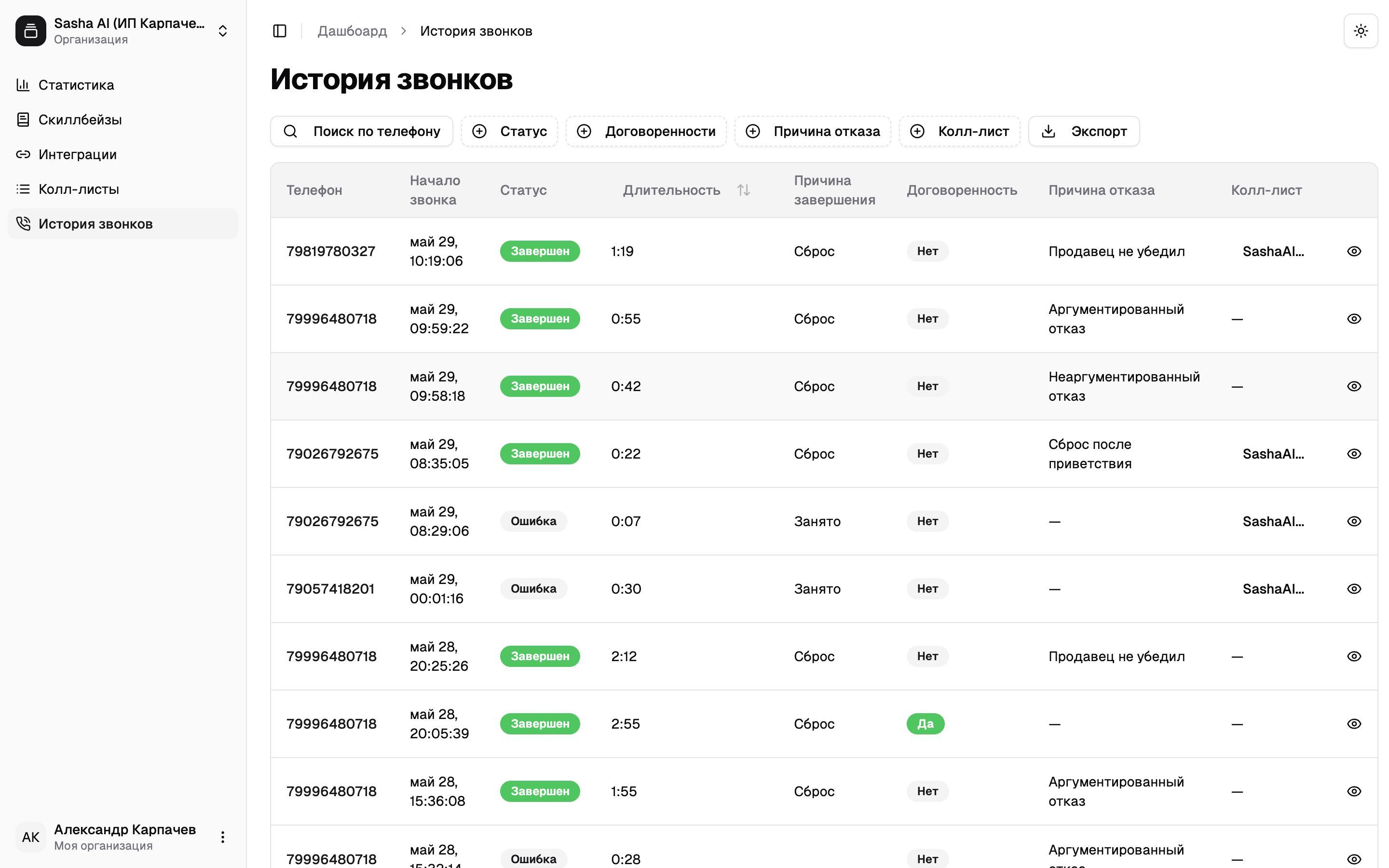 Готово! Если вы сделали все правильно и сейчас рабочее время — результаты обзвона отобразятся в разделе «История